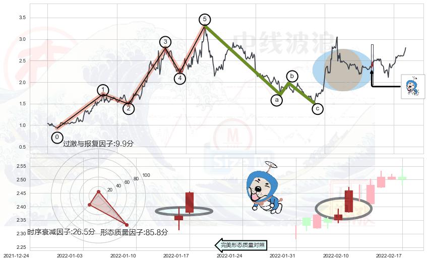 ➢ 🕰 价格走势在2022-02-22至2022-02-22期间形成锤头线(锤子线),残存影响值:2.15
