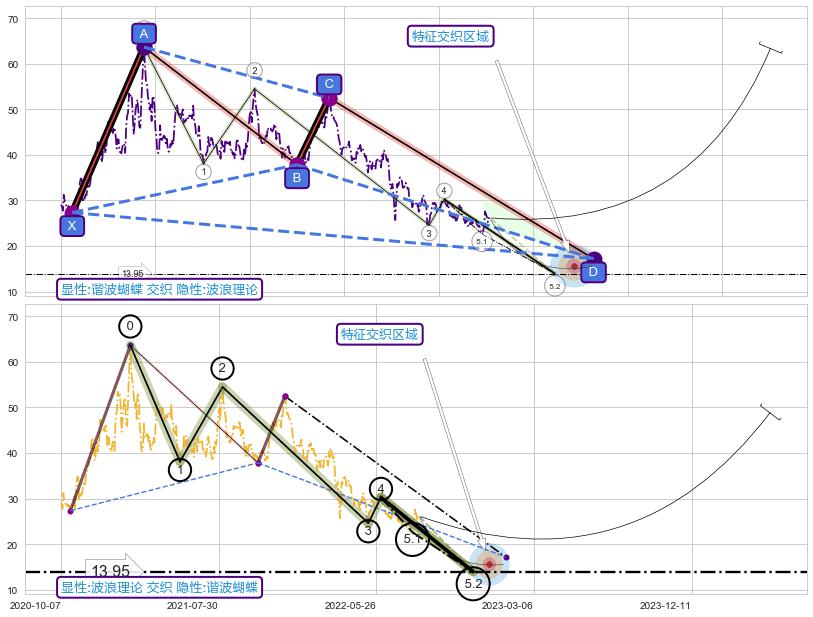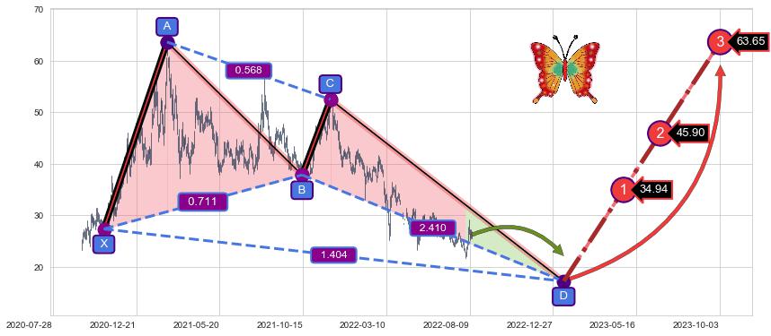 ➣ 未完成【蝴蝶】形态起点X: 2020-10-27, 已到达C点: 2021-12-01, 预测最终D点: 2023-01-13, 共545交易日