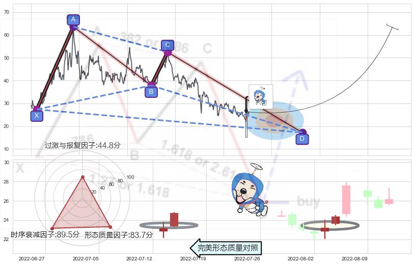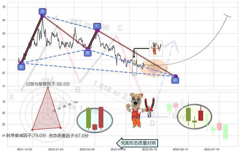 ➢ 上涨镊子线(U形磁铁) 🔜 谐波蝴蝶临近d拐点上涨支撑 综合量化分数:50.19 【中性】