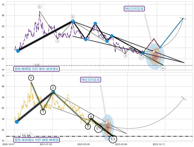 ➢ 降楔型与波浪理论信号事件周期长度级别相同,同周期信号事件