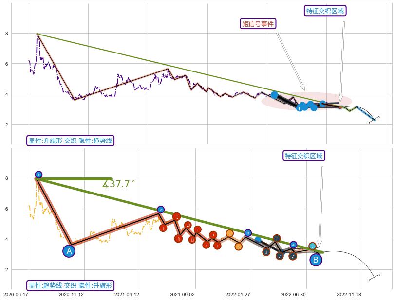 ➢ 升旗形属【短级别信号事件】趋势线属【长级别信号事件】长短周期组合信号事件, 短长事件长度比21.48%