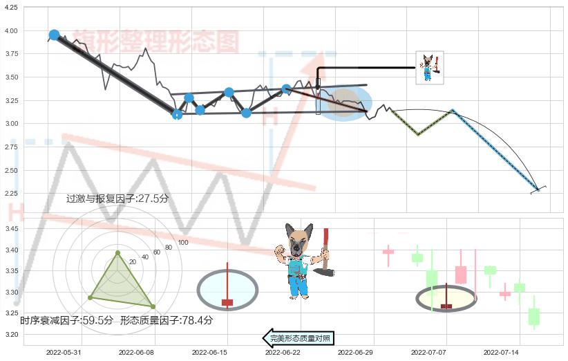 ➢ 空方炮 🔜 升旗形支撑破位转换阻力下跌 综合量化分数:42.45 【偏空】