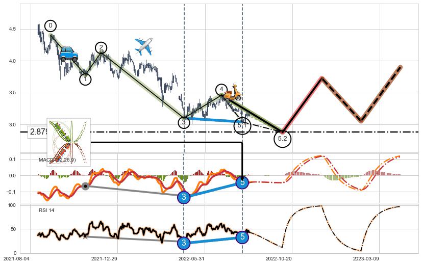 ➣ 5.1: 预测当前第5浪位置(2022-08-02, 3.040),仍然有下跌空间