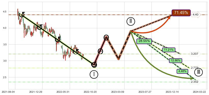 ➢ AI预测: 假定反转启动后, 第❷目标位置(2022-12-23, 3.270)