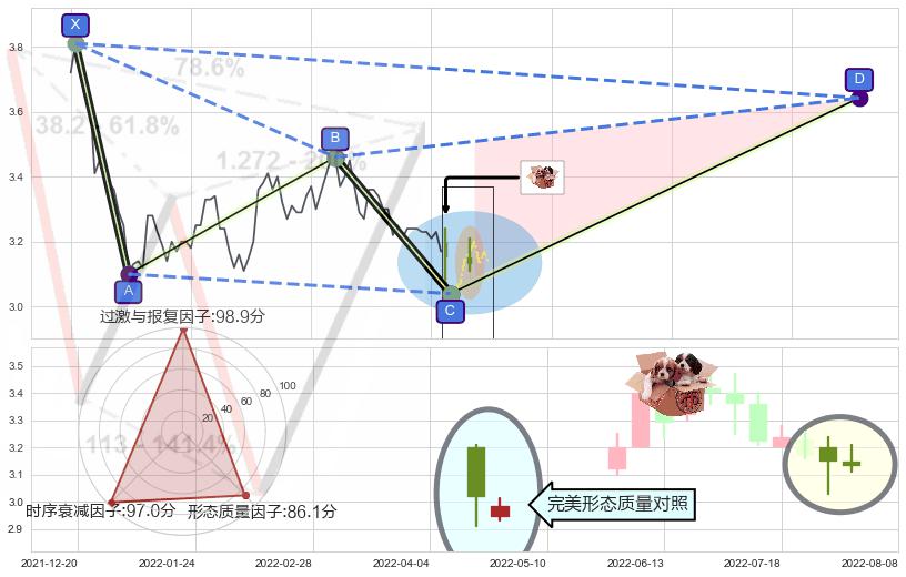 ➢ 🕰 价格走势在2022-08-01至2022-08-08期间形成底部尽头线(上山虎),残存影响值:3.20