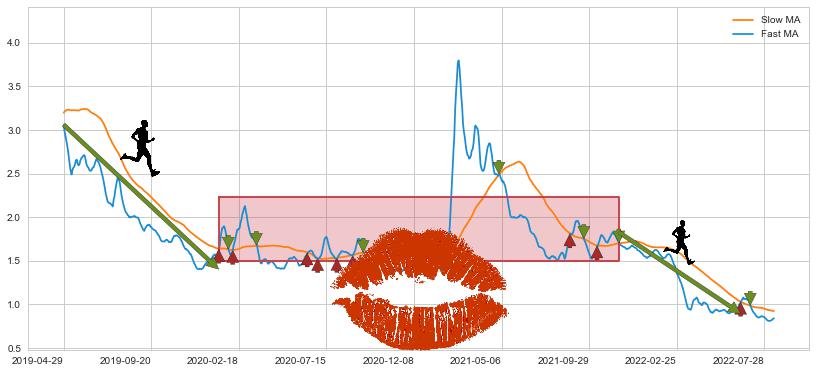 2021-11-19至2022-06-20 慢线与快线呈空头排列, 慢线与快线接触少,无缠绕