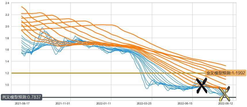 ➣ 34小时均线于(2022-06-30: 0.9771)形成【死叉】基于【死叉历史模型】预测死叉后最低波谷价格: 0.8310, 死叉后最低价格0.7800,已经下跌超出预测最低波谷价格, 预期反弹