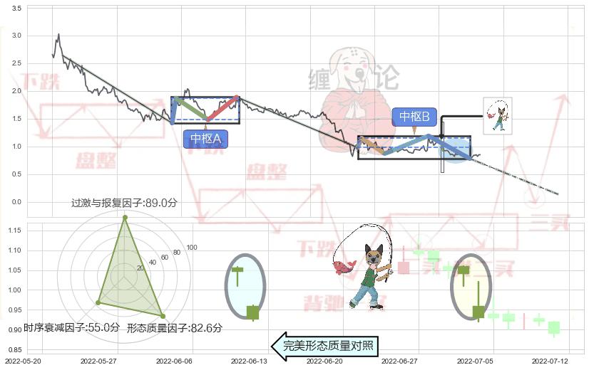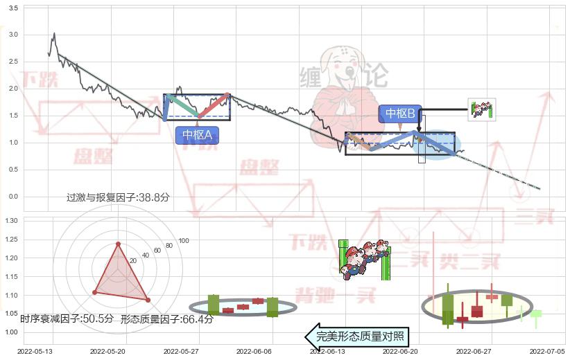 ➢ 下降三部曲(降势三鹤) 🔜 缠论中枢点破位中枢B支撑下拉 综合量化分数:45.93 【偏空】