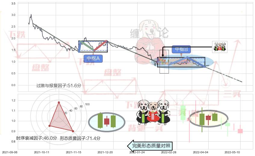 ➢ 看跌(高位倒锤头)流星线 🔜 缠论中枢点破位中枢B支撑下拉 综合量化分数:46.55 【中性】