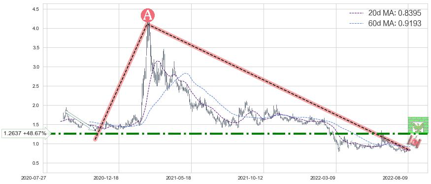 ♘ 阻力价格位1.2637,可信任强度80.69%,距离最后交易2022-08-12形成的收盘价格0.8500相差 +48.67%