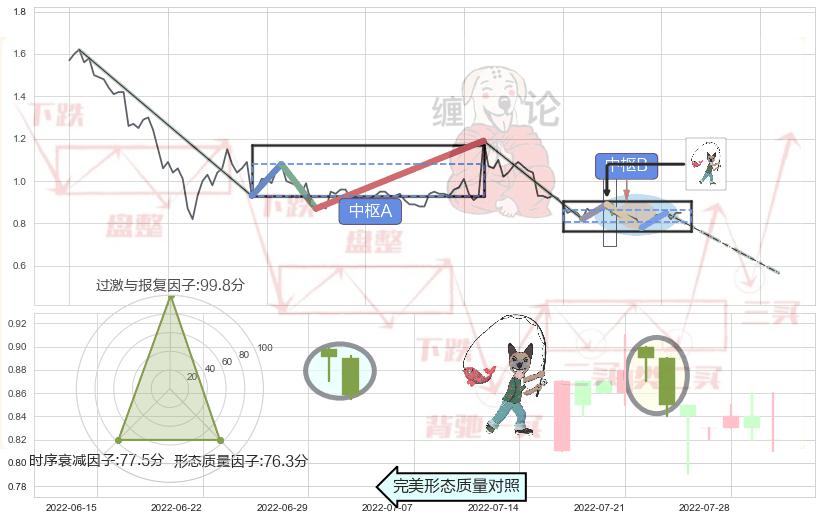 ➢ 【中枢B】:2022-07-15-2022-08-09,中枢由4笔构成,共18交易日, ZG=0.8500, ZD=0.8200