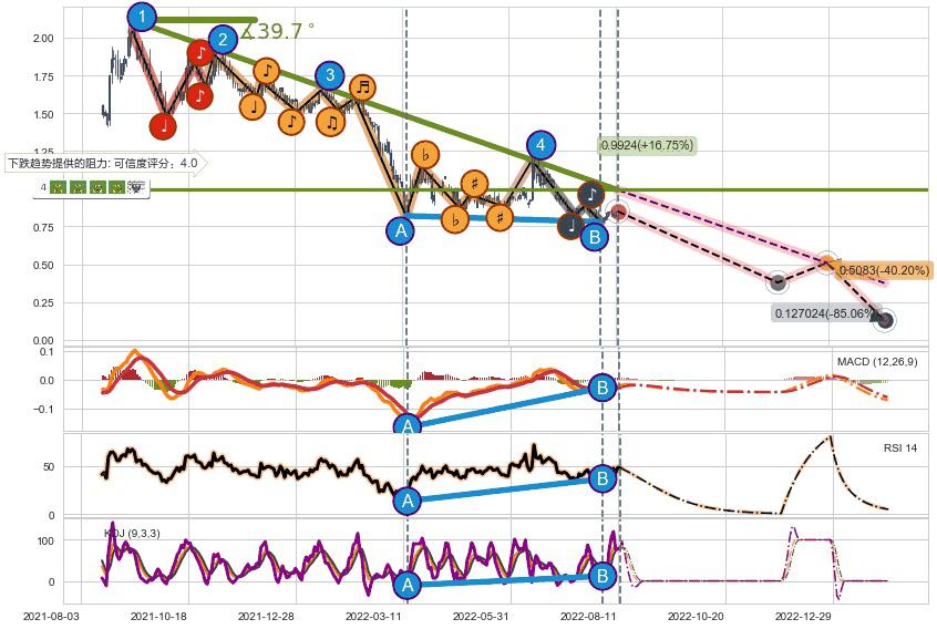 ♘ 在最后的下跌阶段2021-09-06至2022-08-08,存在 持续未破位的阻力位 ,阻力价格0.9924,可信任强度84.90%,其距离最后价格0.8500相差 +16.75%