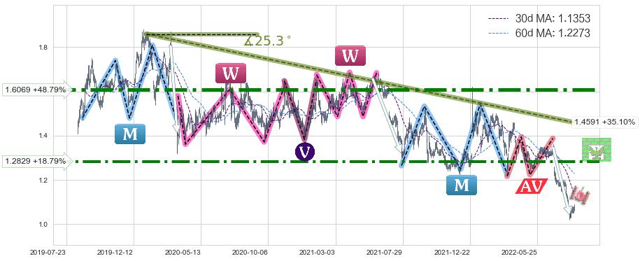 ♞ 30日均线:1.1353,60日均线:1.2273→ 快线<慢线