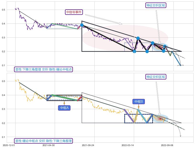 ➢ 下降三角整理属【中级别信号事件】缠论中枢点属【长级别信号事件】中长周期组合信号事件,中长事件长度比57.30%