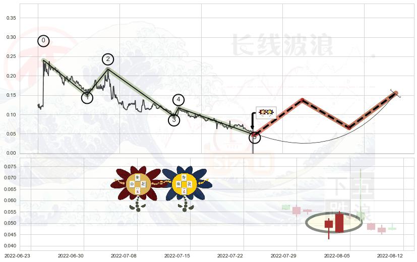 ➢ 🕰 价格走势在2022-05-13至2022-05-19期间形成低档五阳线,残存影响值:0.24