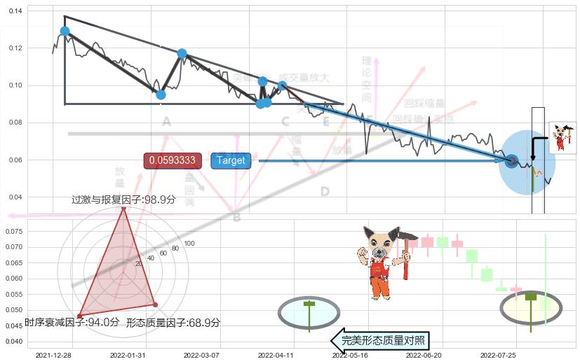 ➢ 【卖1】: 激进型 卖点→(2022-01-19: 0.0900000 )形成突破下降三角形整理【整理】形态