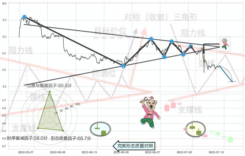 ➢ 【卖1】: 激进型 卖点→(2022-06-13: 4.54 )形成突破下降【对称】三角形整理【整理】形态