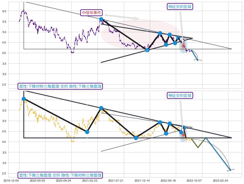 ➢ 下降对称三角整理属【中级别信号事件】下降三角整理属【长级别信号事件】中长周期组合信号事件,中长事件长度比48.95%