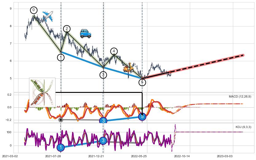 ➢ 【买0】下跌趋势线在→(2022-05-31: 5.46 )被突破,反转趋势形成