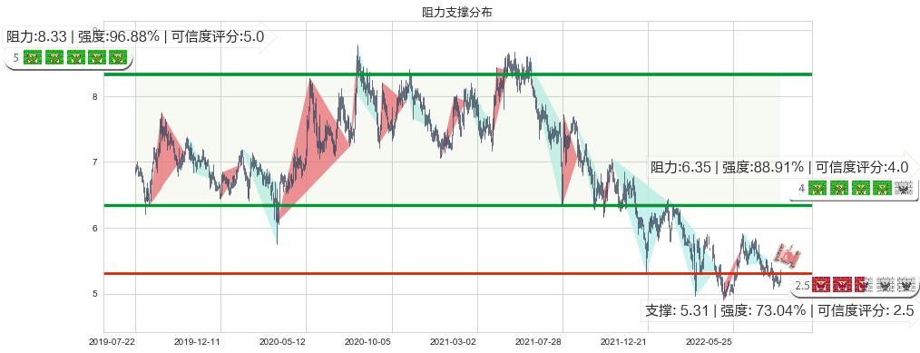 ♘ 支撑价格位5.31,可信任强度73.04%,距离最后交易2022-08-12形成的收盘价格5.35相差 -0.70%