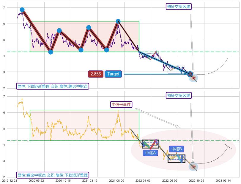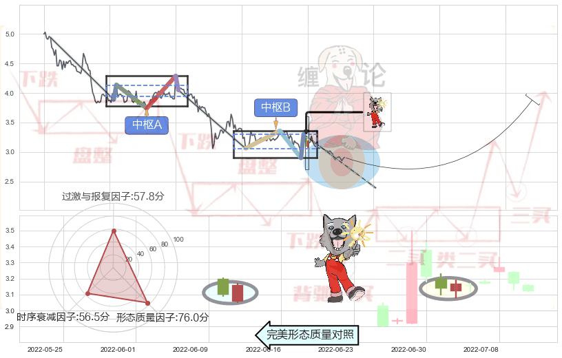 ➢ 【中枢B】:2022-04-25-2022-06-29,中枢由4笔构成,共45交易日, ZG=3.300, ZD=3.060