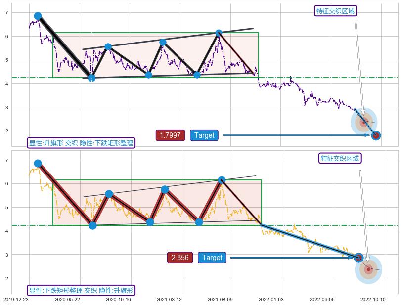 ➢ 下跌矩形整理:下跌目标target已达成:猜想强支撑位临近,预期反弹上涨(均值回复)