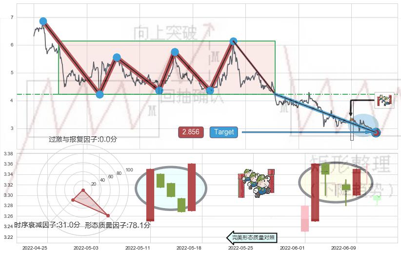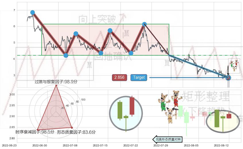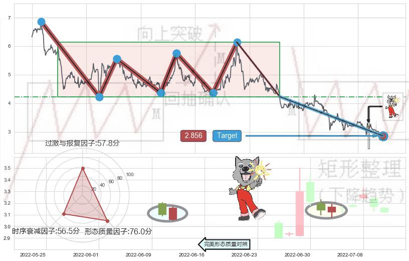 ➢ 曙光初现形态 🔜 下跌矩形整理target支撑拐点上涨 综合量化分数:54.97 【偏多】