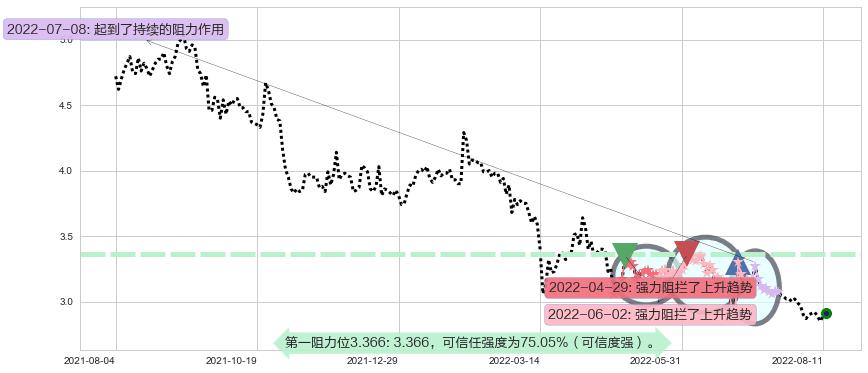 ♘ 阻力价格位3.366,可信任强度75.05%,距离最后交易2022-08-12形成的收盘价格2.910相差 +15.67%