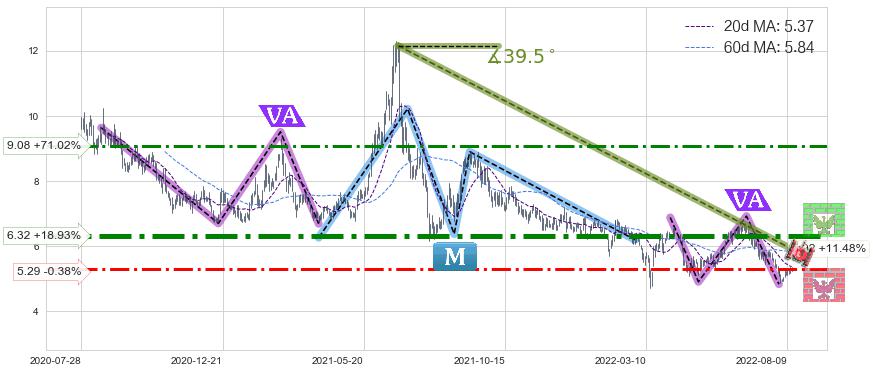 ♞ 20日均线:5.37,60日均线:5.84→ 快线<慢线