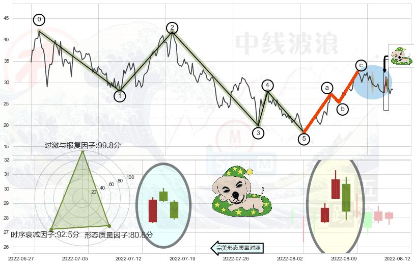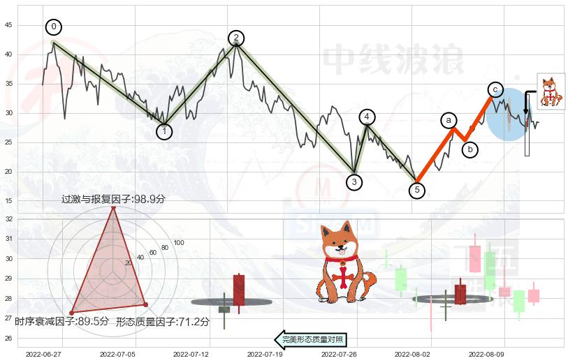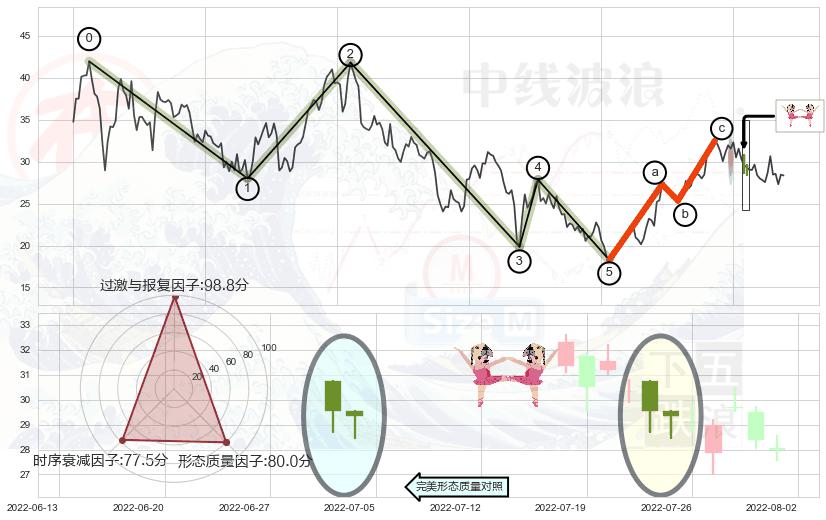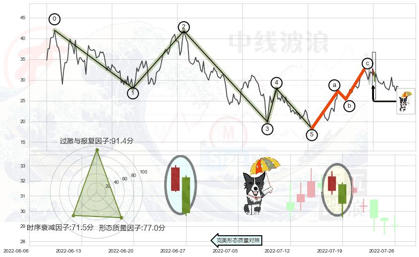 ➢ 射击之星形态 🔜 波浪理论c点反弹终止反转下跌 综合量化分数:45.30 【偏空】