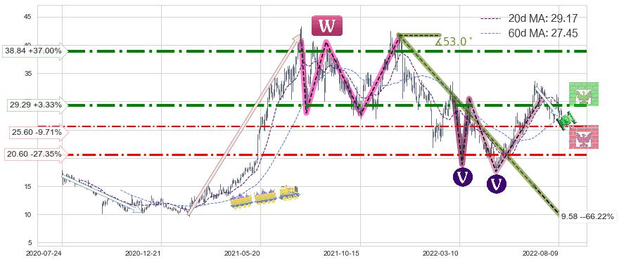 ♘ 阻力价格位29.29,可信任强度73.56%,距离最后交易2022-08-12形成的收盘价格28.35相差 +3.33%