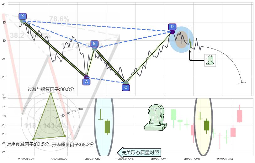 ➢ 谐波赛福:已到达d点:猜想c拉升到达d点后泄力性下沉下跌(均值回复)