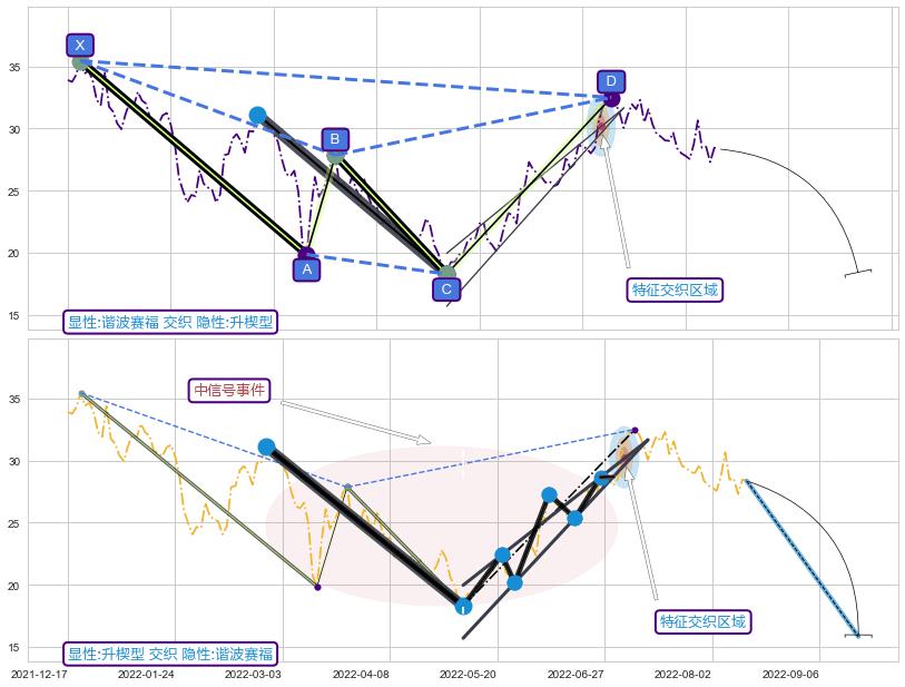 ➢ 升楔型属【中级别信号事件】谐波赛福属【长级别信号事件】中长周期组合信号事件,中长事件长度比63.08%