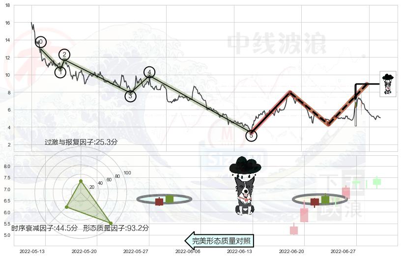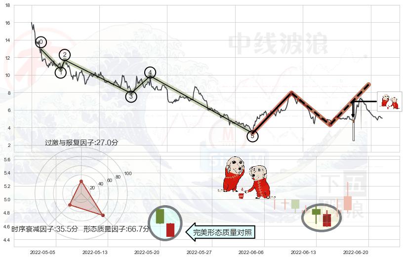 ➢ 下跌镊子线(n形磁铁) 🔜 波浪理论c点反弹终止反转下跌 综合量化分数:46.65 【中性】