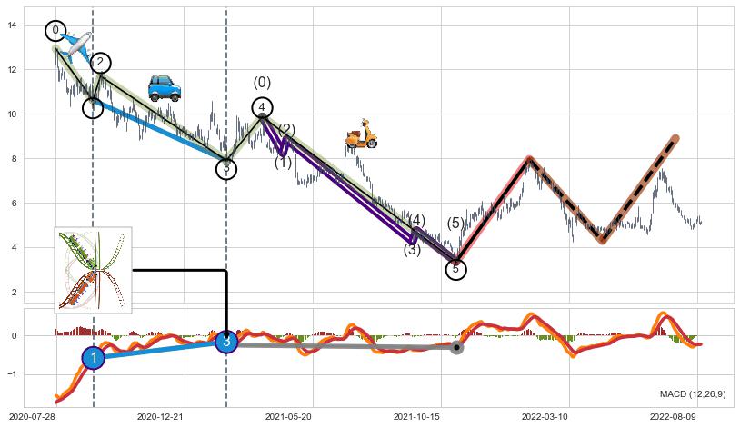 ➢ 波浪理论:猜想达到c点后小反弹终止反转下跌 → 下跌 → 【拐点】临近 → 阶段均值回复结束后继续大周期趋势跟踪