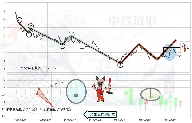 ➢ 🕰 价格走势在2022-07-18至2022-07-18期间形成单针探底(定海神针),残存影响值:5.23