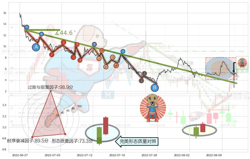 ♘ 支撑价格位4.01,可信任强度52.10%,距离最后交易2022-08-12形成的收盘价格5.05相差 -20.51%