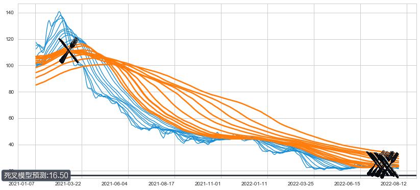 ➣ 70小时均线于(2022-07-28: 23.60)形成【死叉】基于【死叉历史模型】预测死叉后最低波谷价格: 12.66, 死叉后最低价格20.95,尚未达到预测最低波谷价格, 预期继续下跌