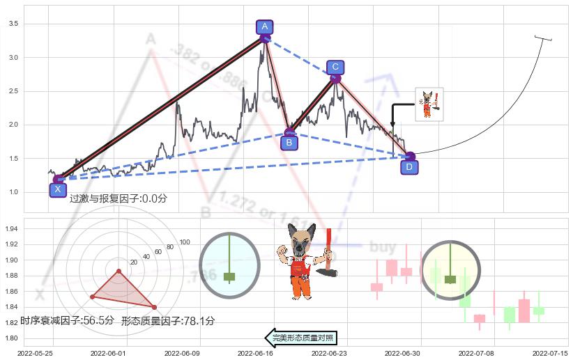 ➢ 上涨螺旋桨形态 🔜 谐波伽利d拐点上涨支撑 综合量化分数:52.08 【中性】