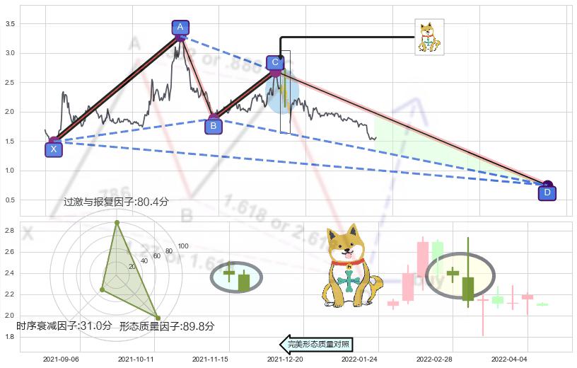 ➣ 未完成【蝴蝶】形态起点X: 2021-02-04, 已到达C点: 2022-02-18, 预测最终D点: 2023-05-16, 共567交易日