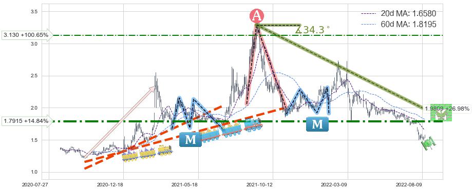 ➣ D点拟合预测价格0.7484,距离最后交易收盘价格1.5600相差 -52.03%