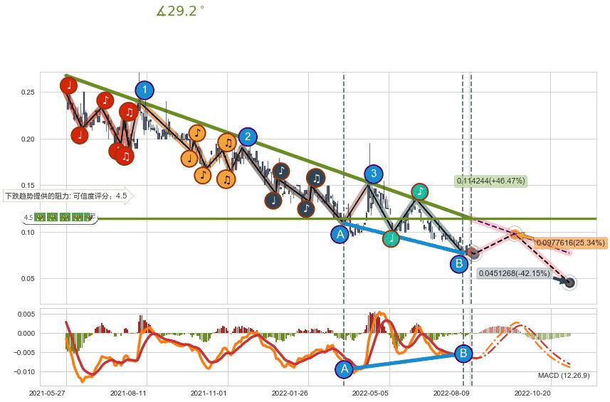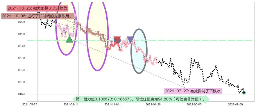 ♘ 阻力价格位0.186673,可信任强度94.80%,距离最后交易2022-08-12形成的收盘价格0.0780000相差 +139.32%