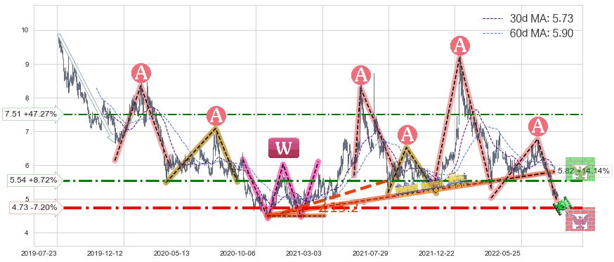 ♘ 阻力价格位7.51,可信任强度52.72%,距离最后交易2022-08-12形成的收盘价格5.10相差 +47.27%