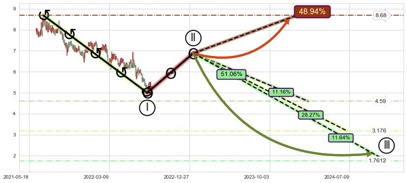 ➣ 波浪理论:猜想止跌 → 上涨 →【拐点】浪5已完成 → 大趋势均值回复