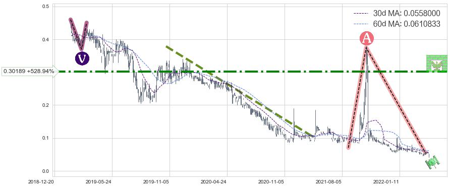 ♘ 阻力价格位0.30189,可信任强度81.26%,距离最后交易2022-03-31形成的收盘价格0.0480000相差 +528.94%