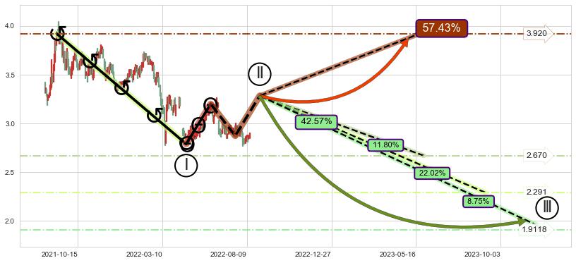 ➣ 循环浪继续向下【平均值】位置(2023-09-07, 2.291),匹配聚类样本比例51.72%, 可能性概率22.02%