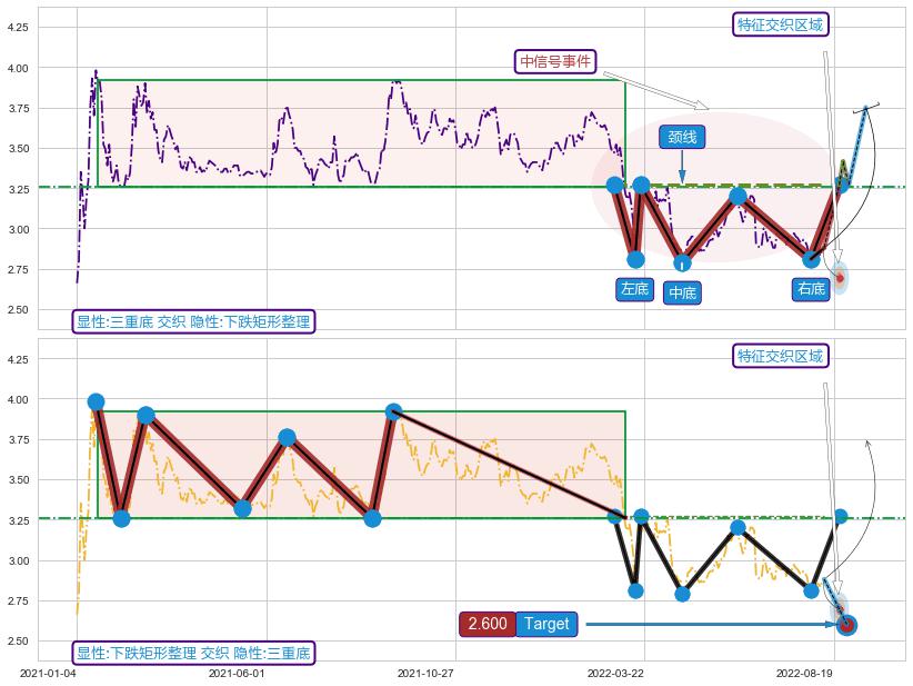 ➣ 【未确认突破,预测即将形成突破】三重底起点:2022-02-10, 预测突破点:2022-08-24,形态共132交易日