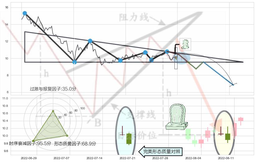 ➢ 【未确认突破,预测即将形成突破】下降三角形整理起点:2022-01-03, 预测突破点:2022-08-25,形态共158交易日