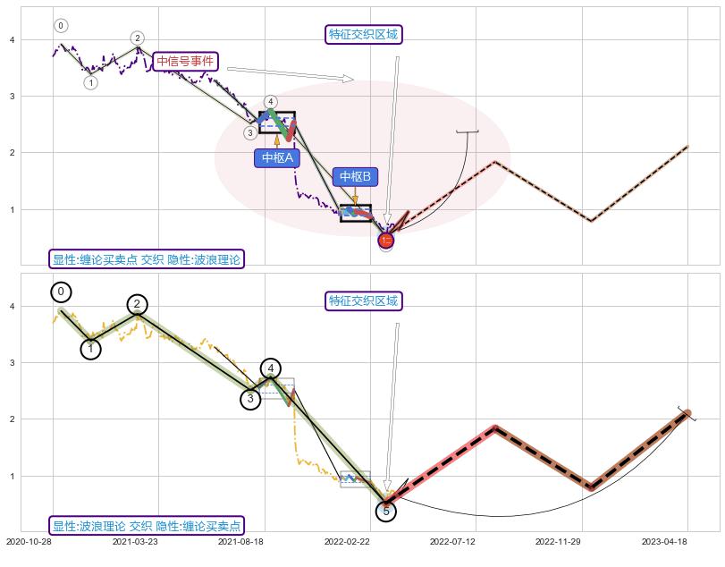 ➣ 缠论买卖点:下降缠中枢AB形成后猜想拐点1买已到达,猜想后续持续拉升(均值回复)