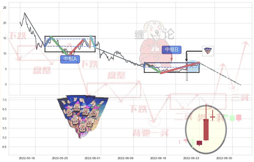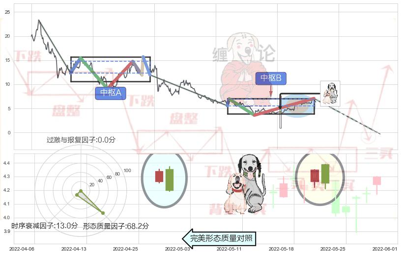 ➣ 看跌(高位倒锤头)流星线 + 缠论中枢点破位中枢B支撑下拉信号叠加后【目标达成率】中等,【看空】信号叠加【存续影响中等】
